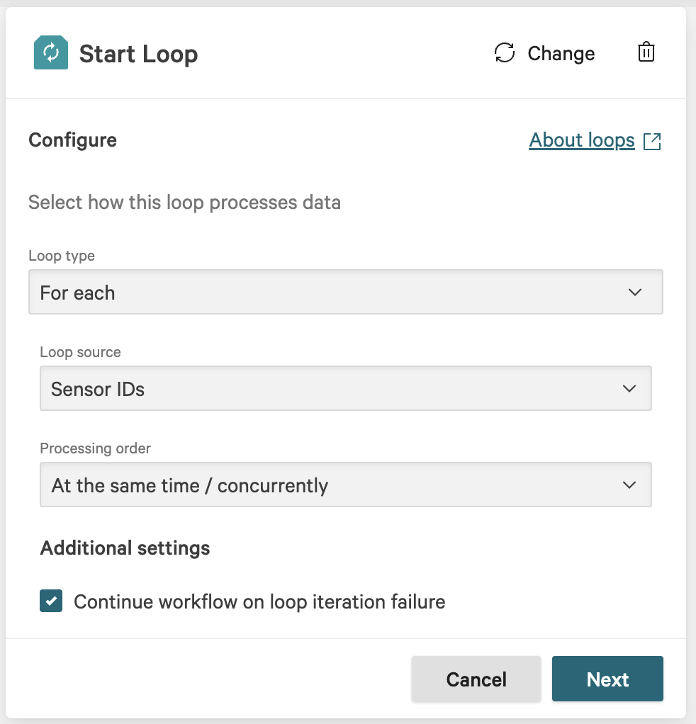 Continue workflow on loop iteration failure: Enabled