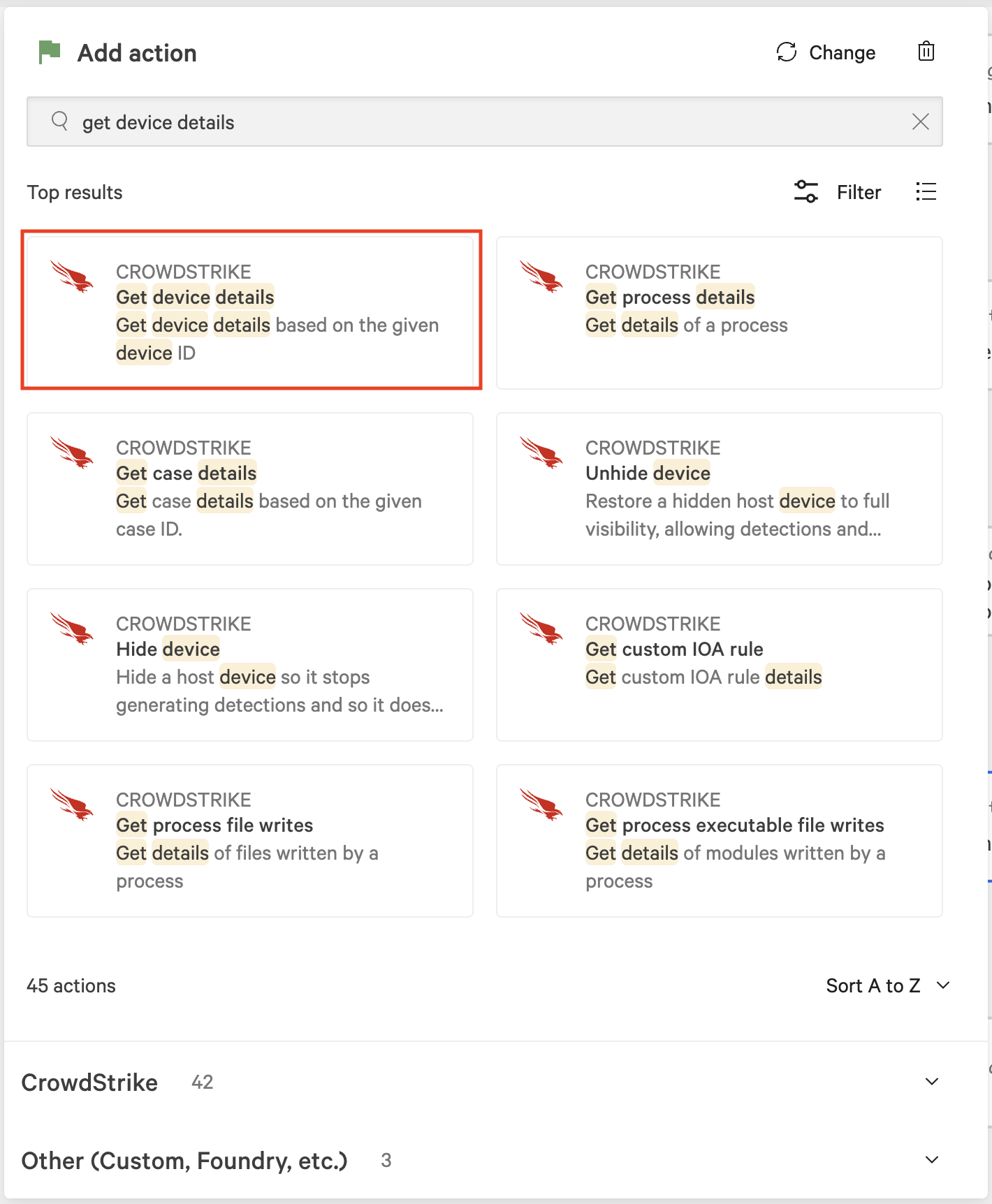 In the Add action dialog, search for and select Get device details.