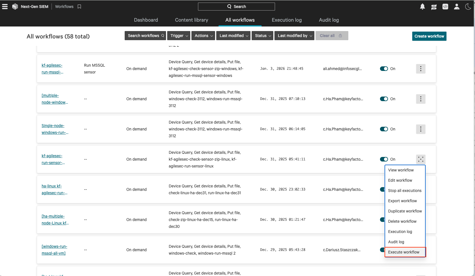 Execute Workflow to Run Host Scan Sensor
