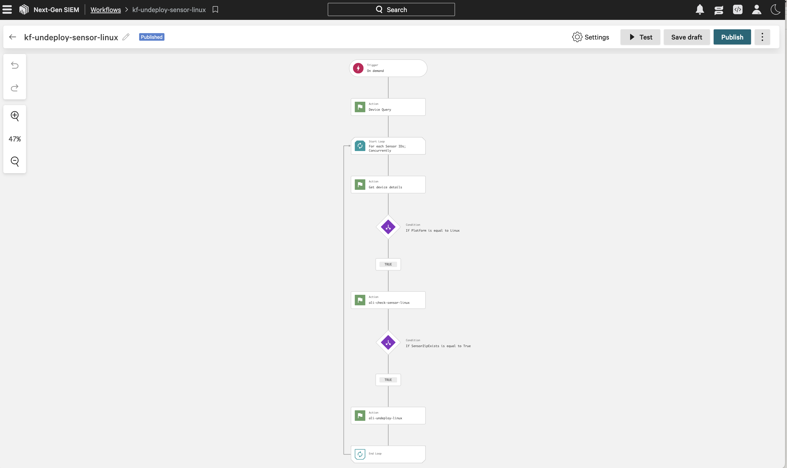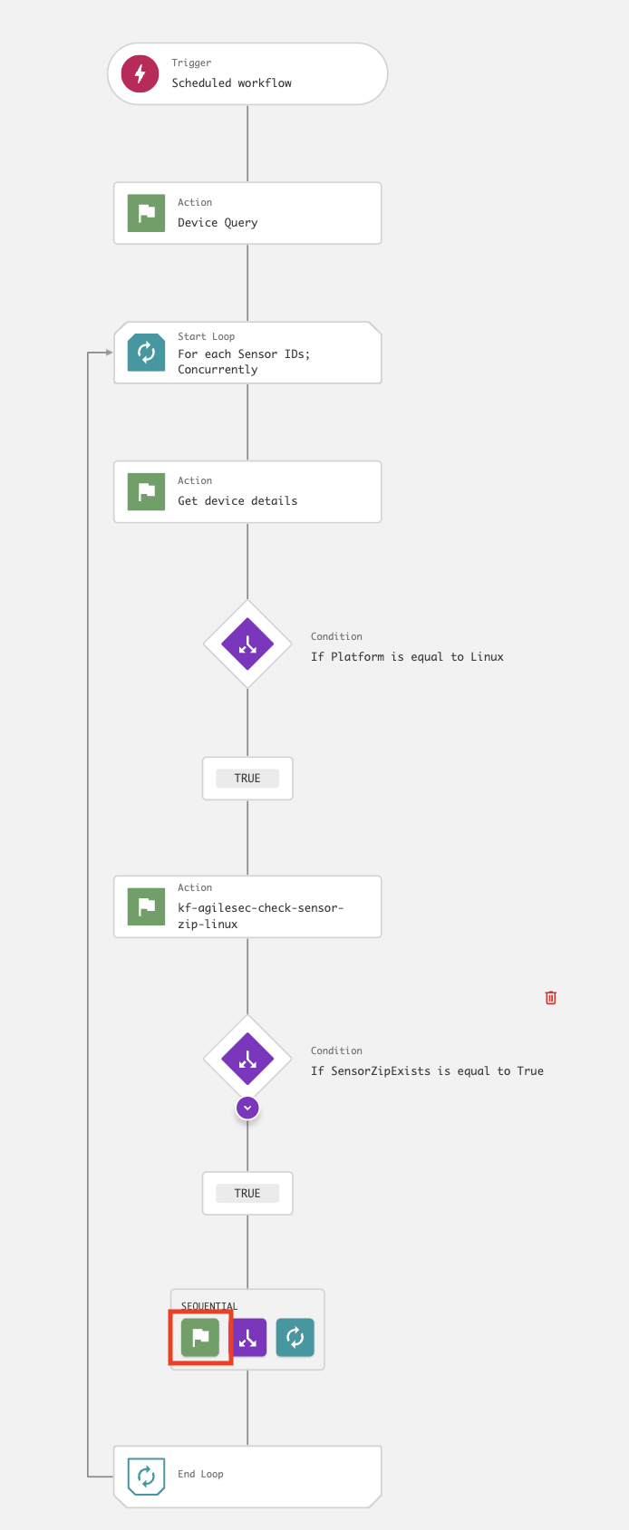 kf-agilesec-run-sensor-<platform>using Step 19The workflow is now complete and should resemble the following: