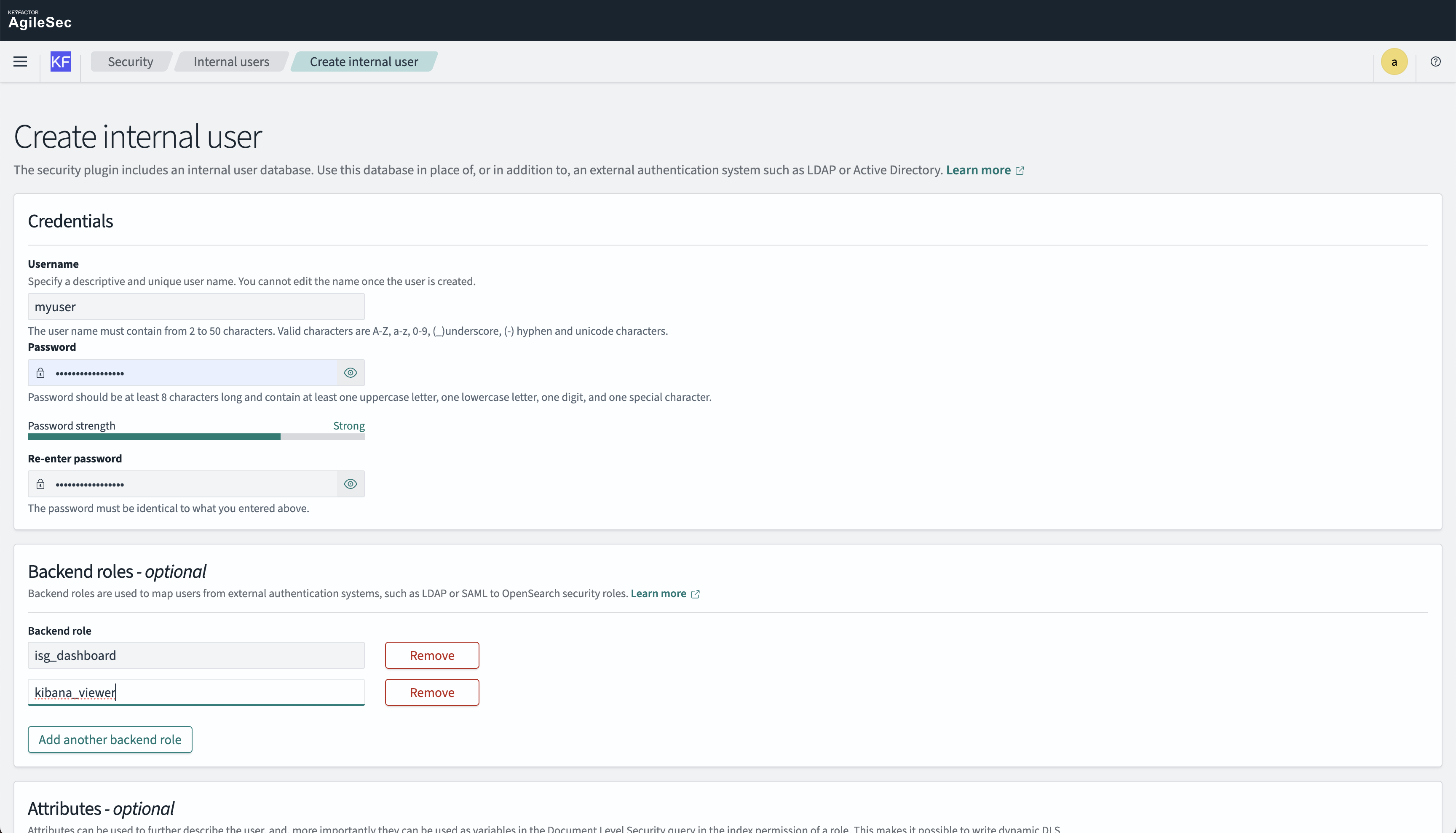 Create internal OpenSearch roles and users when you need: