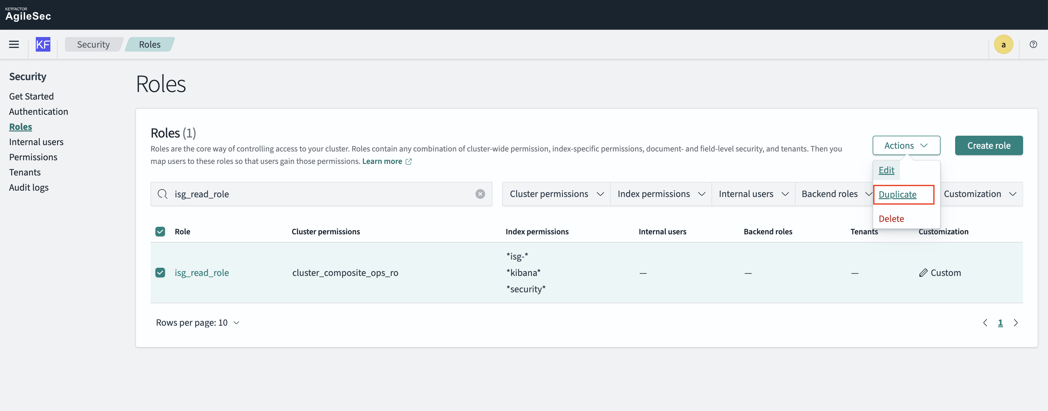 Open the isg_read_role role and duplicate it, as it contains predefined permissions that will be reused.