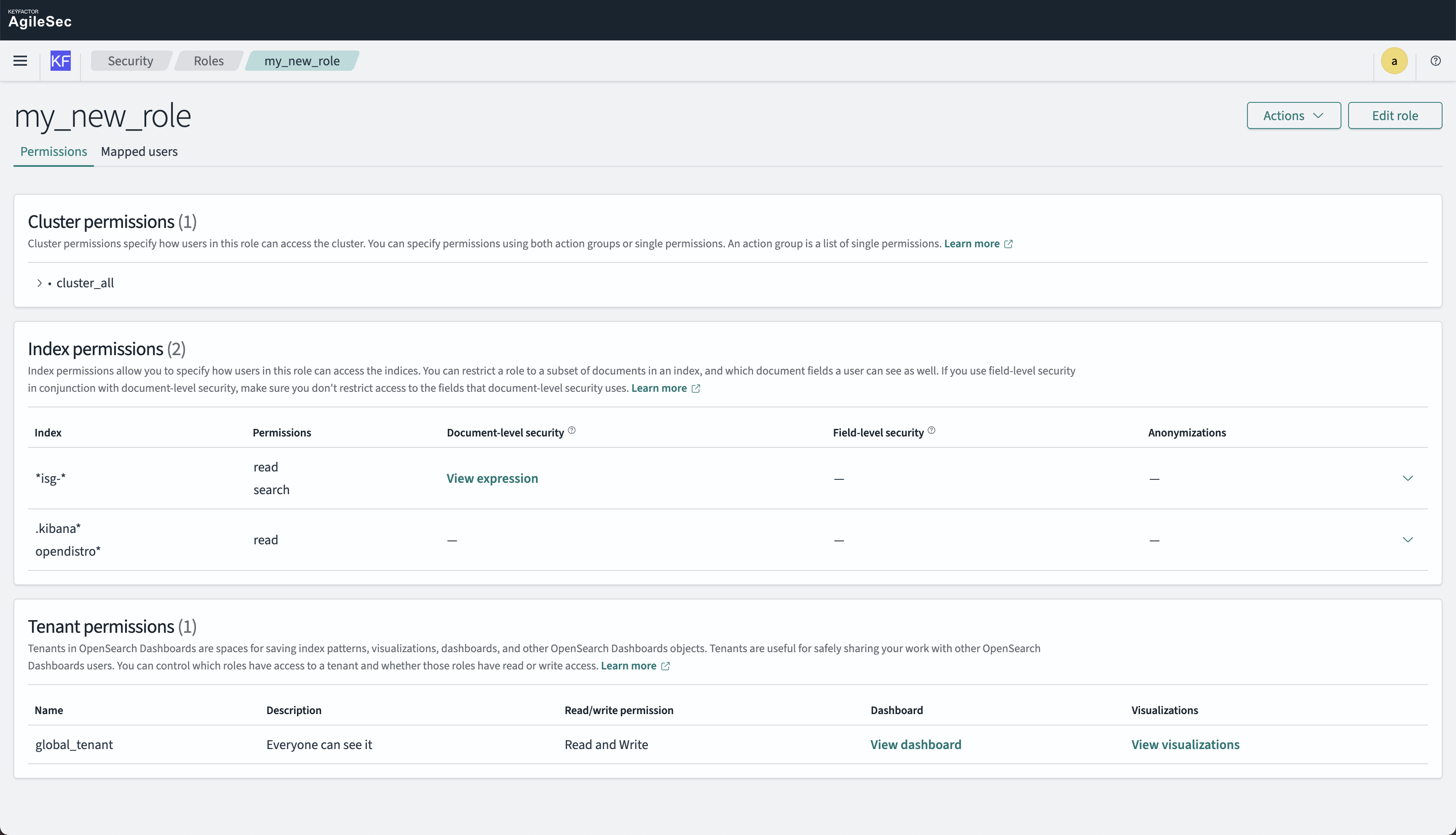 While platform roles control access to AgileSecPlatform features, OpenSearch allows for more granular permission management through internal roles and users. This enables advanced access control scenarios such as index-level, document-level, and field-level security.