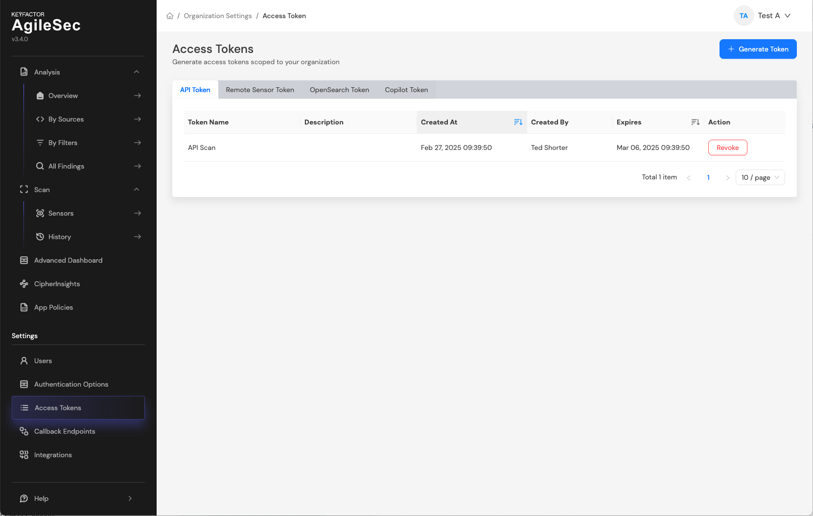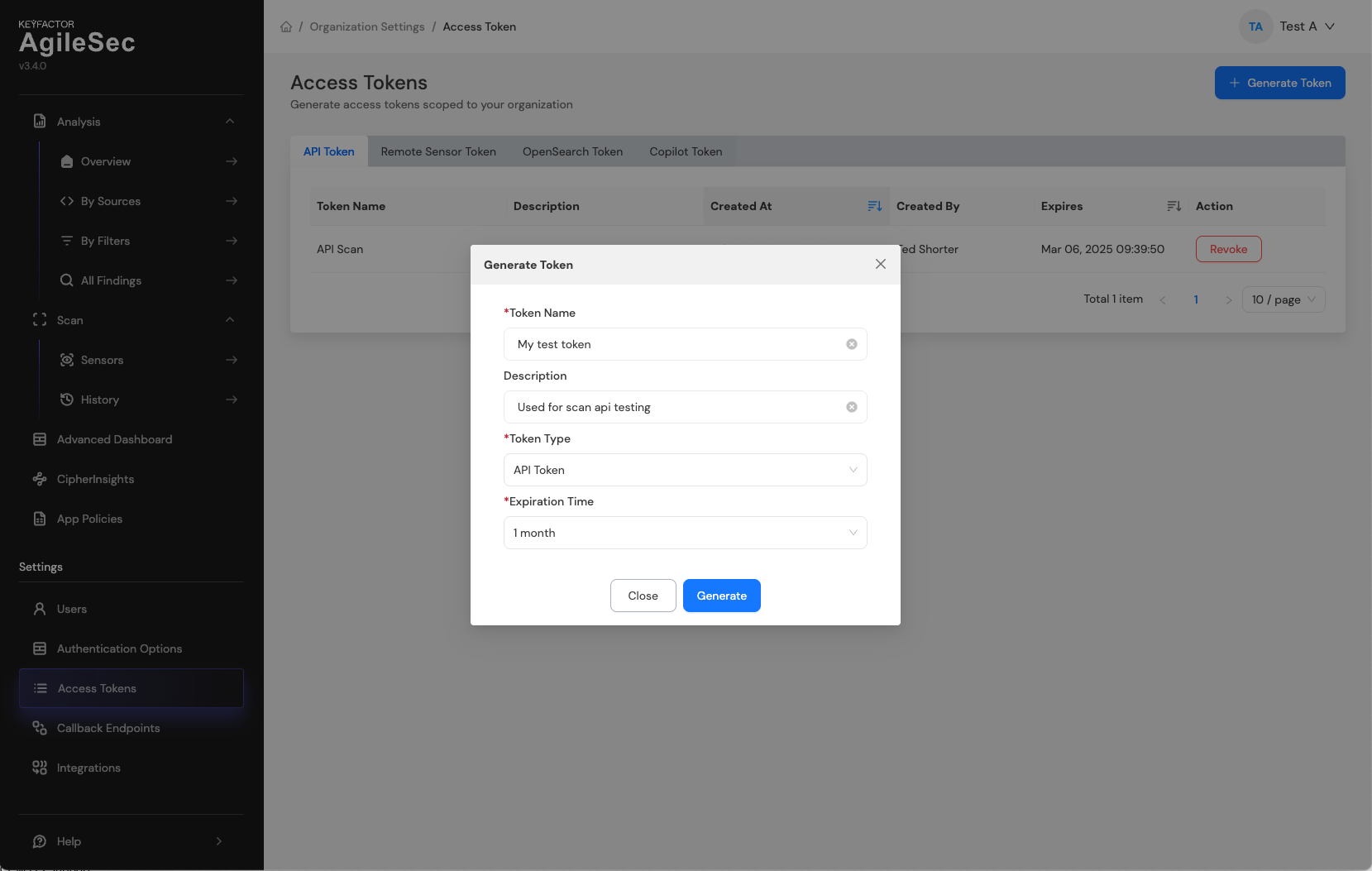 Copy the token immediately and store it in a secure secrets store (for example, a password manager or Vault). The token will not be shown again.