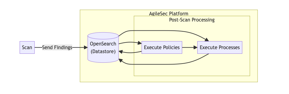 Execute Processes: After policy evaluation, backend processes run to read findings from OpenSearch and perform post-processing activities such as de-duplication and auto-resolution.