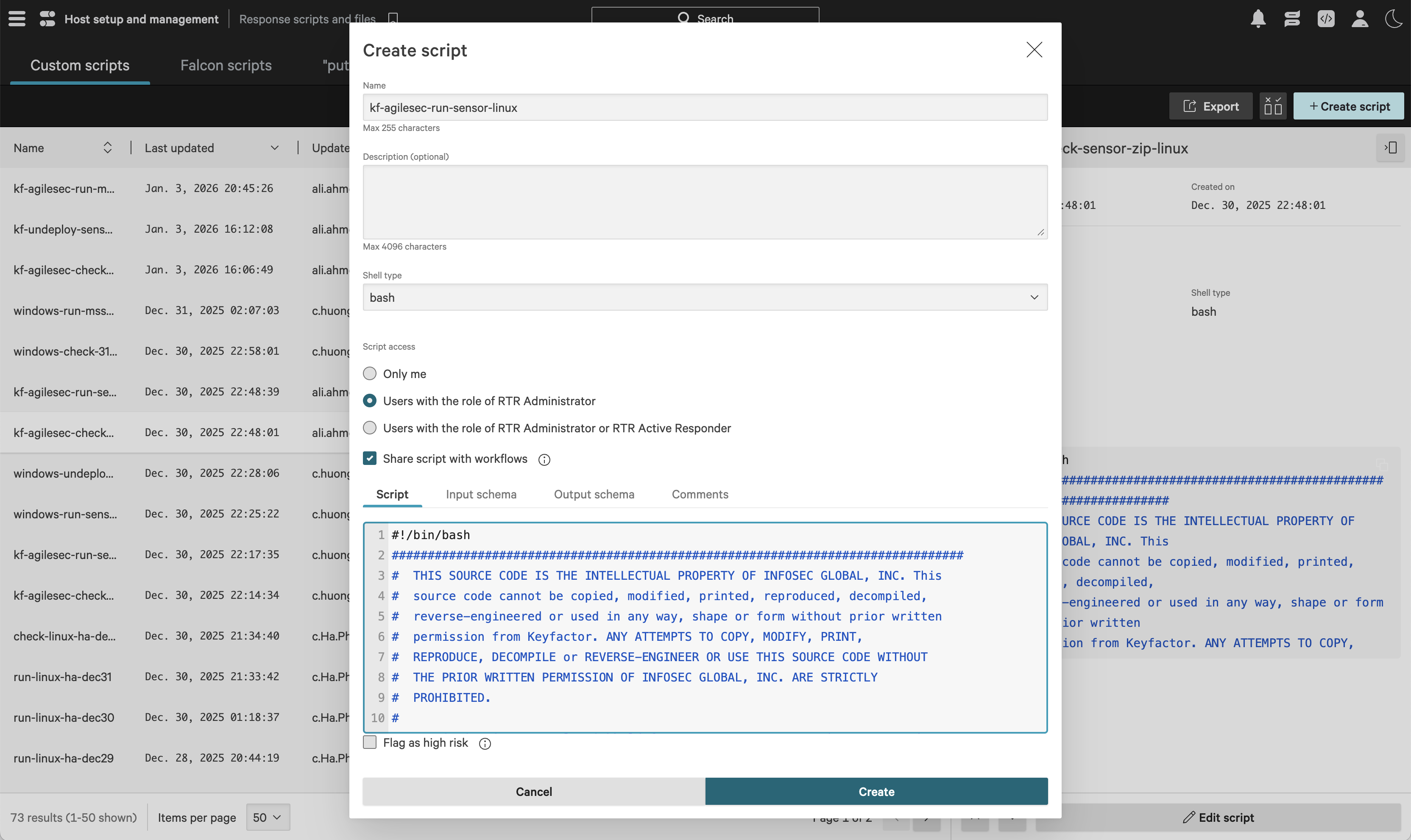 In the Create script dialog, complete the following fields: