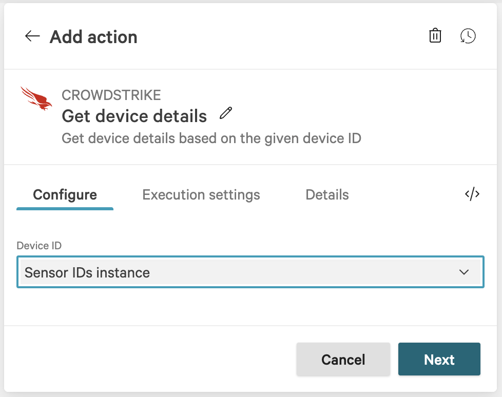 Device ID | Sensor IDs instance | Device ID provided by CrowdStrike |