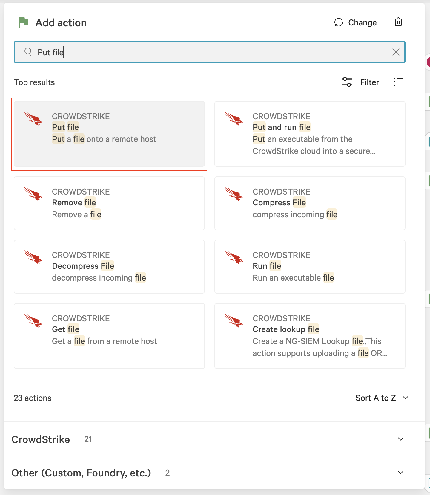 In the Add action dialog, search for and select Put file.