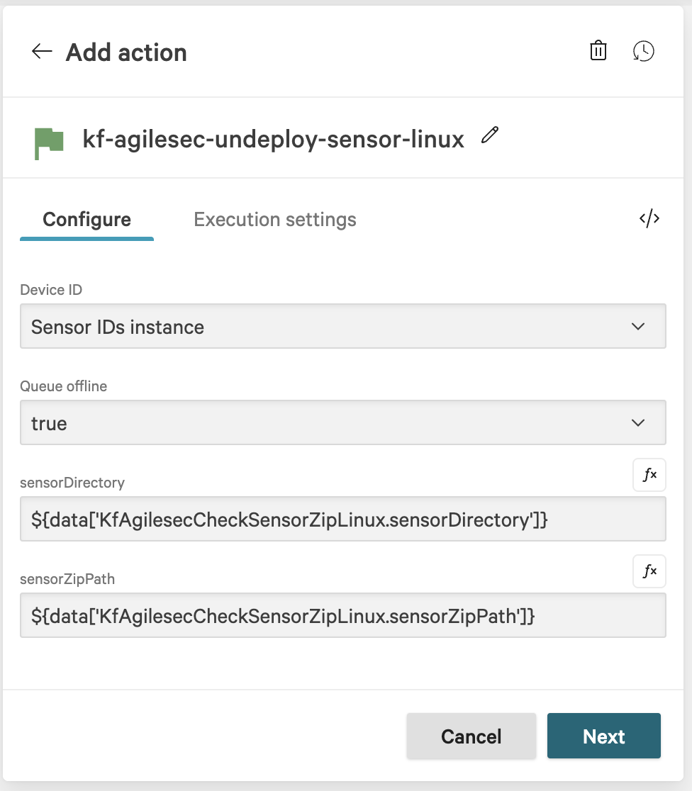 kf-agilesec-undeploy-sensor-linuxFor Windows: add action