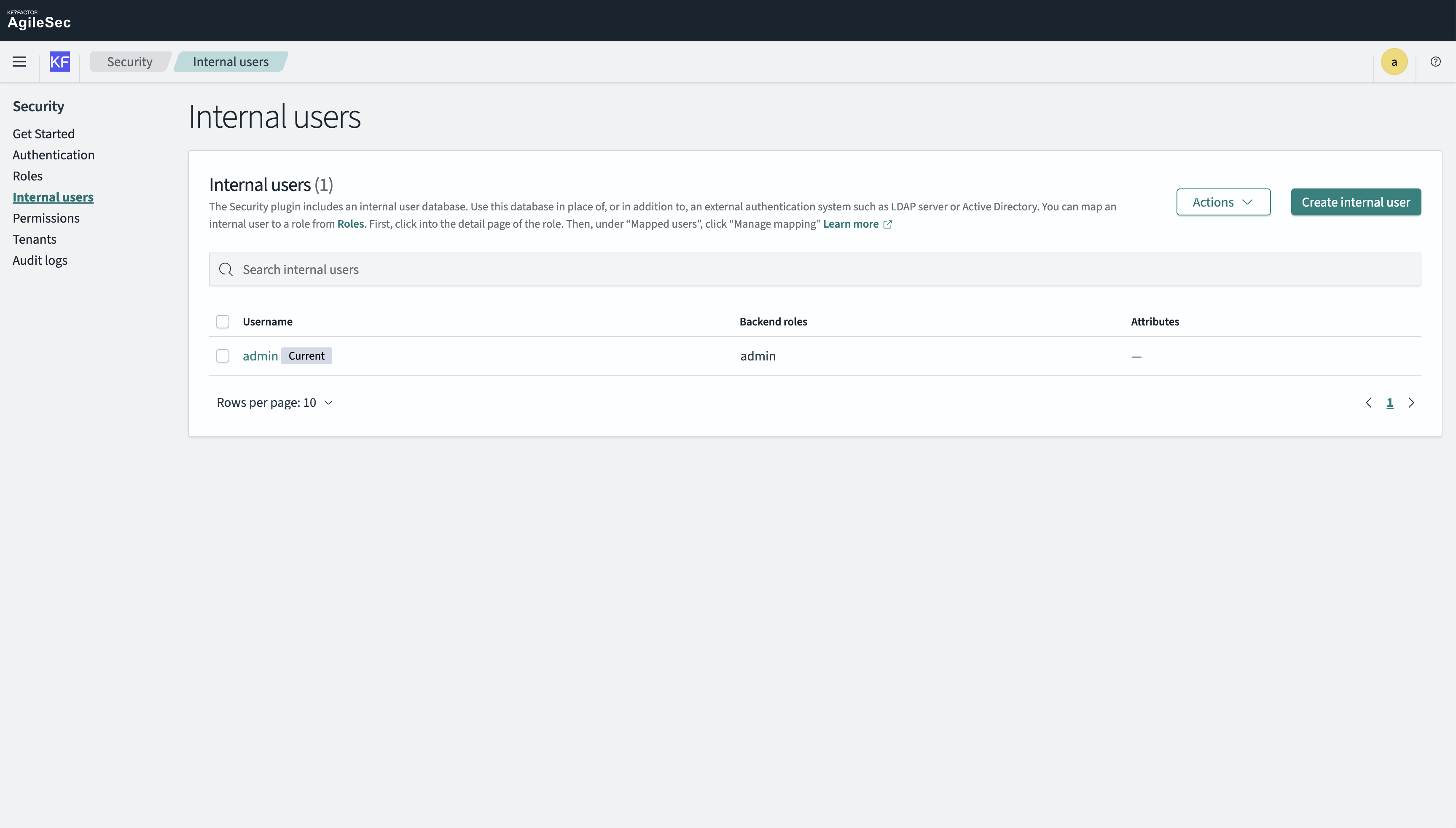 Navigate to Security → Internal Users