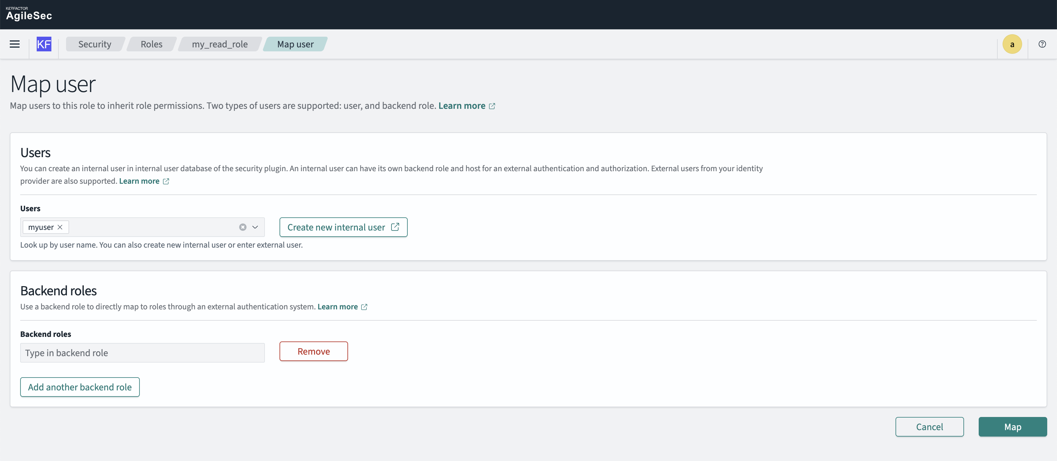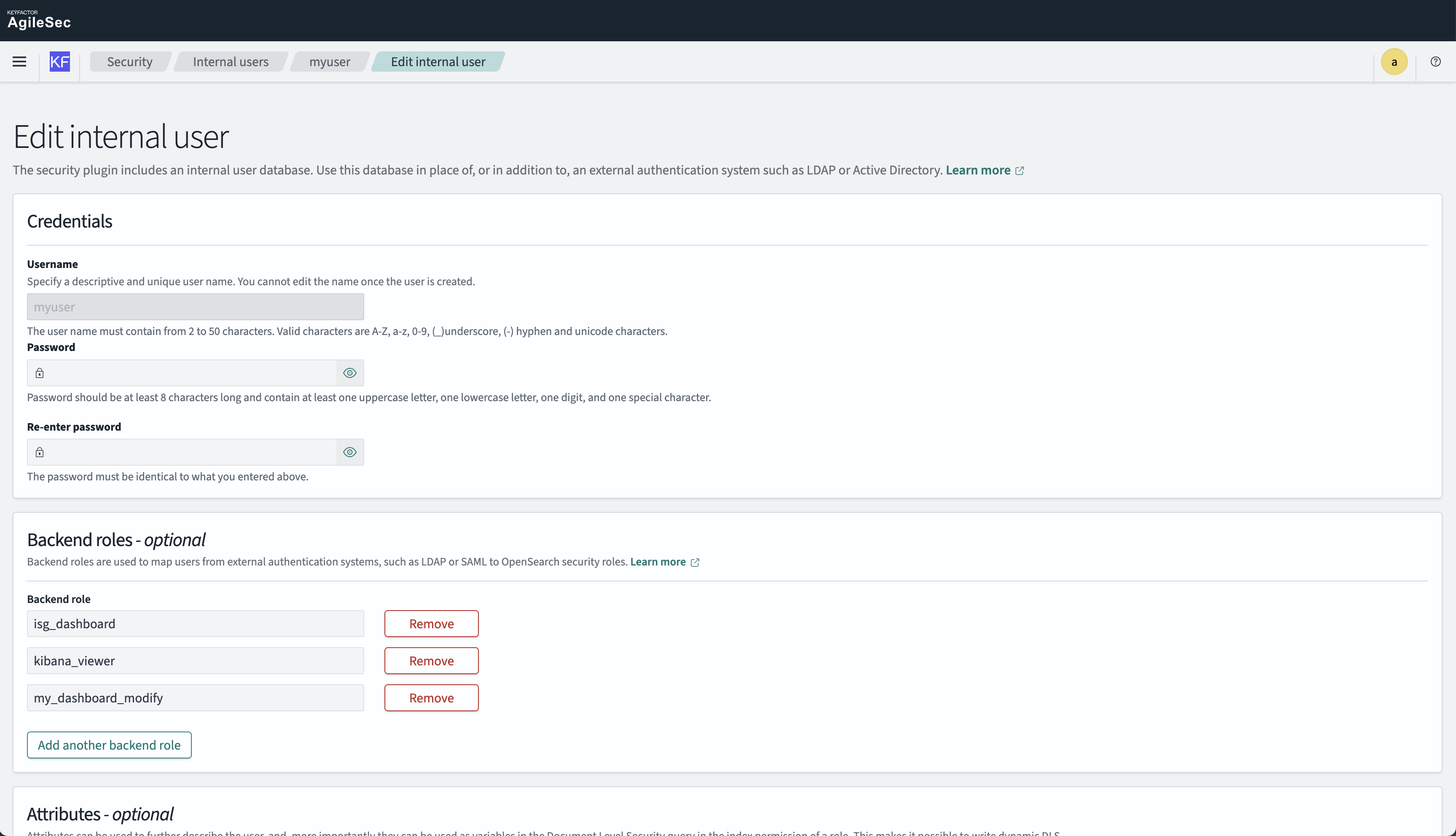 Set Backend roles → Grant predefined roles to the user: