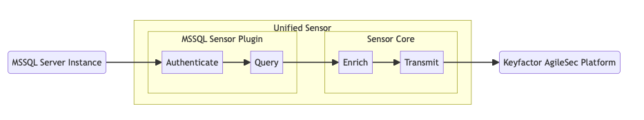 The SQL Server Database Sensor queries SQL Server system views to determine the encryption state for all databases on the target SQL Server instance. For encrypted databases, it captures the encryption method and algorithm, along with Data Encryption Key (DEK) details. When Transparent Data Encryption (TDE) is enabled and protected by a certificate, the sensor also collects associated X.509 certificate metadata and other relevant cryptographic attributes. The sensor then sends these findings to Keyfactor’s AgileSec platform.