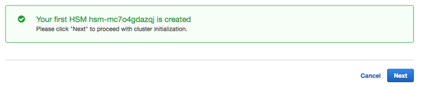 - Once completed, the wizard will show you the HSM created and allow you to continue by clicking Next: