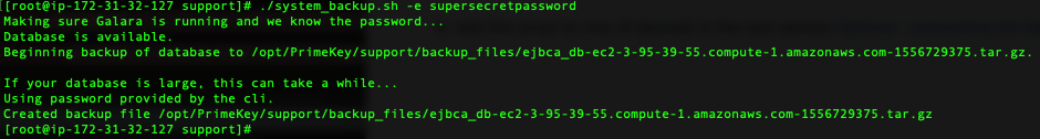 BASH# /opt/PrimeKey/support/system_backup.sh -e supersecretpassword