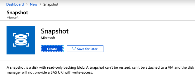 For additional information, refer to the Microsoft Azure documentation on how to Snapshot a disk.