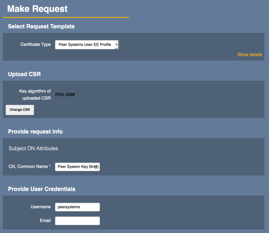 - Change CN, Common Name to "peersystems".