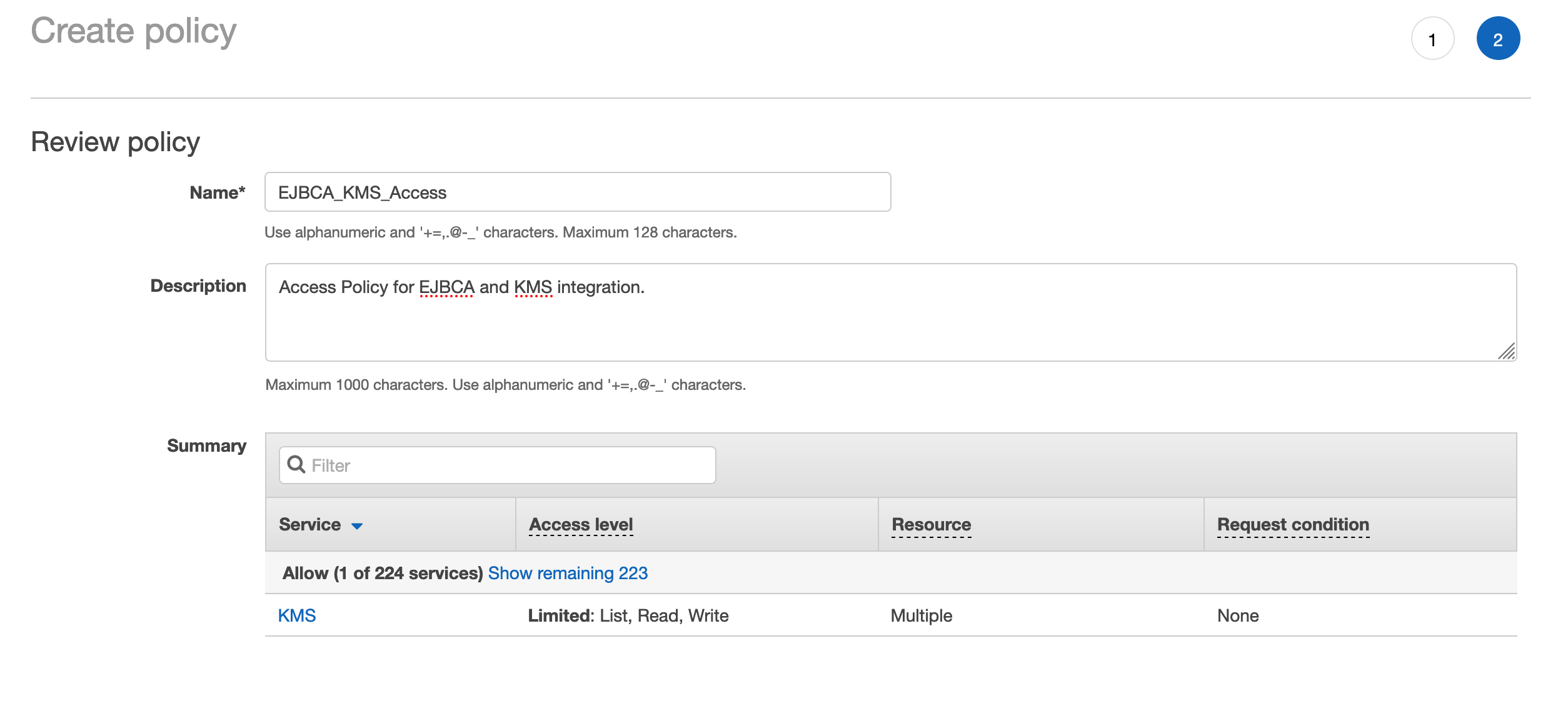 The following describes how to integrate the EJBCA AWS instance with the AWS Key Management Service (KMS) and create keys in AWS KMS for use with an EJBCA CA.