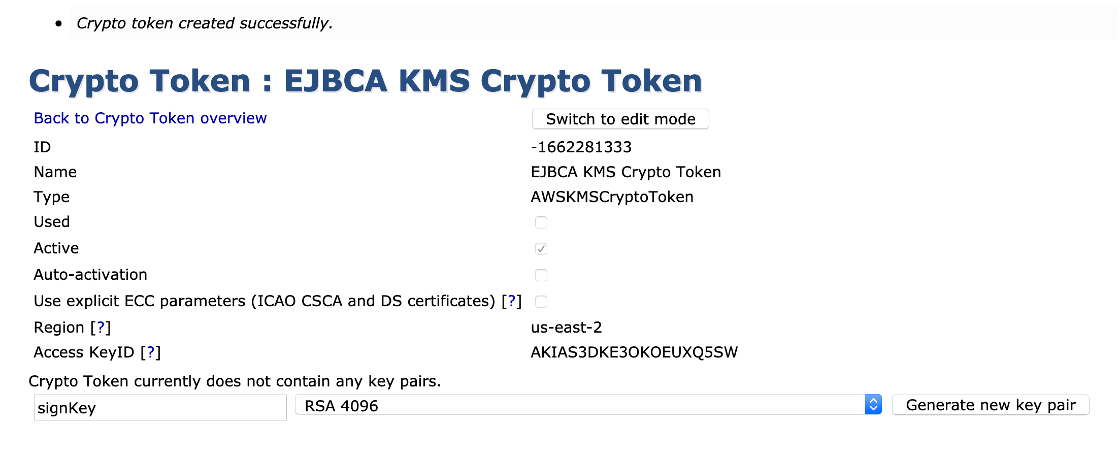 ant clean deployear - Click Create new in the EJBCA Crypto Token screen and select AWS KMS as the Type.