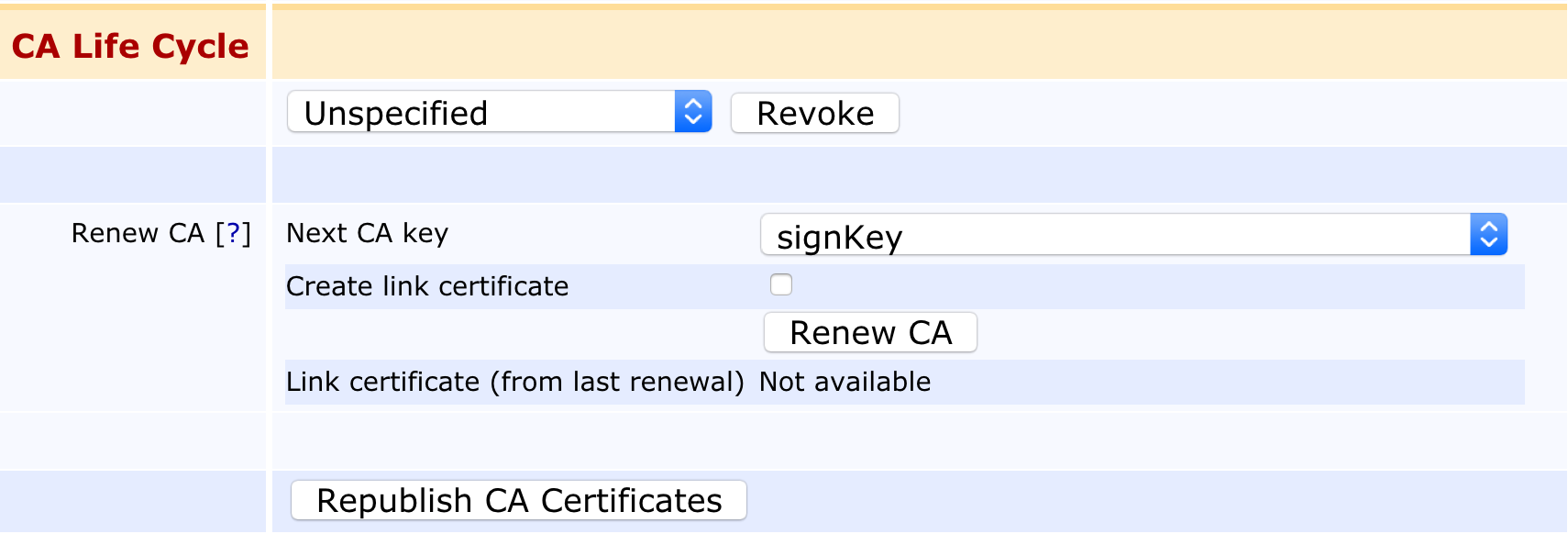 - In the CA Life Cycle section, click Republish CA Certificates.