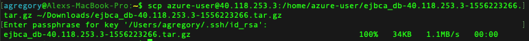 CODE# scp azure-user@40.118.253.3:/home/azure-user/ejbca_db-40.118.253.3-1556223266.tar.gz ~/Downloads/ejbca_db-40.118.253.3-1556223266.tar.gz