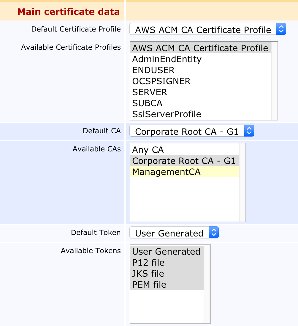 - Select the AWS ACM CA Certificate Profile for Default Certificate Profile and Available Certificate Profile.