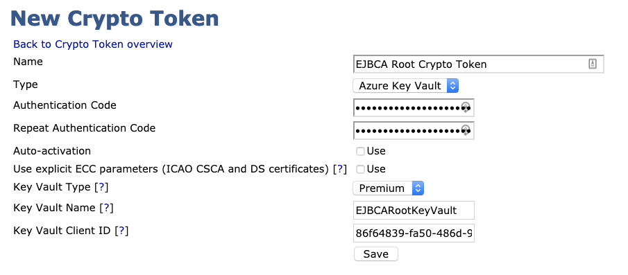 Creating an Azure Key Vault Crypto Token in EJBCA