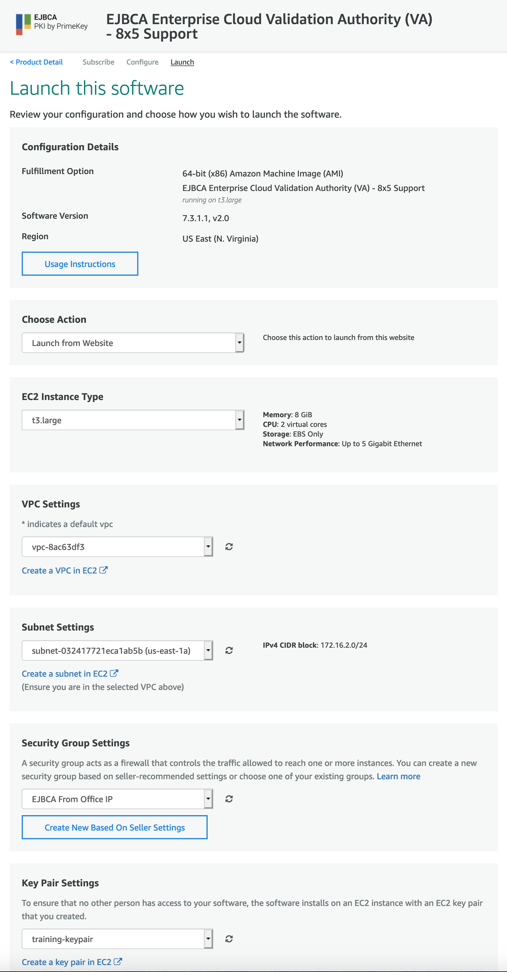 Launch EJBCA Cloud AWS VA Instance