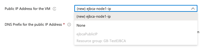 Select if a Public IP is desired to be added to this deployment. If no Public IP is chosen (None), you must have direct access to the subnet chosen for deployment so the web interface of EJBCA can be accessed after deployment.