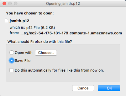 To generate an EJBCA P12 file with a Certificate and Key for a standard user: