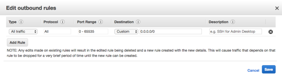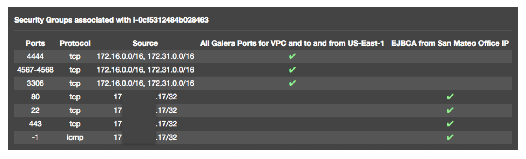 - In the node details there is a link to View Inbound Rules. The associated IPs should be something like this (modified for your IP ranges subnets).