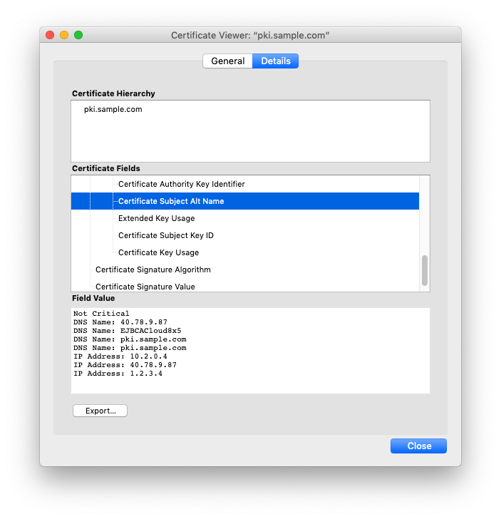 The third FQDN ispki.sample.comas specified with-d. The same principles apply to the IP addresses as well.