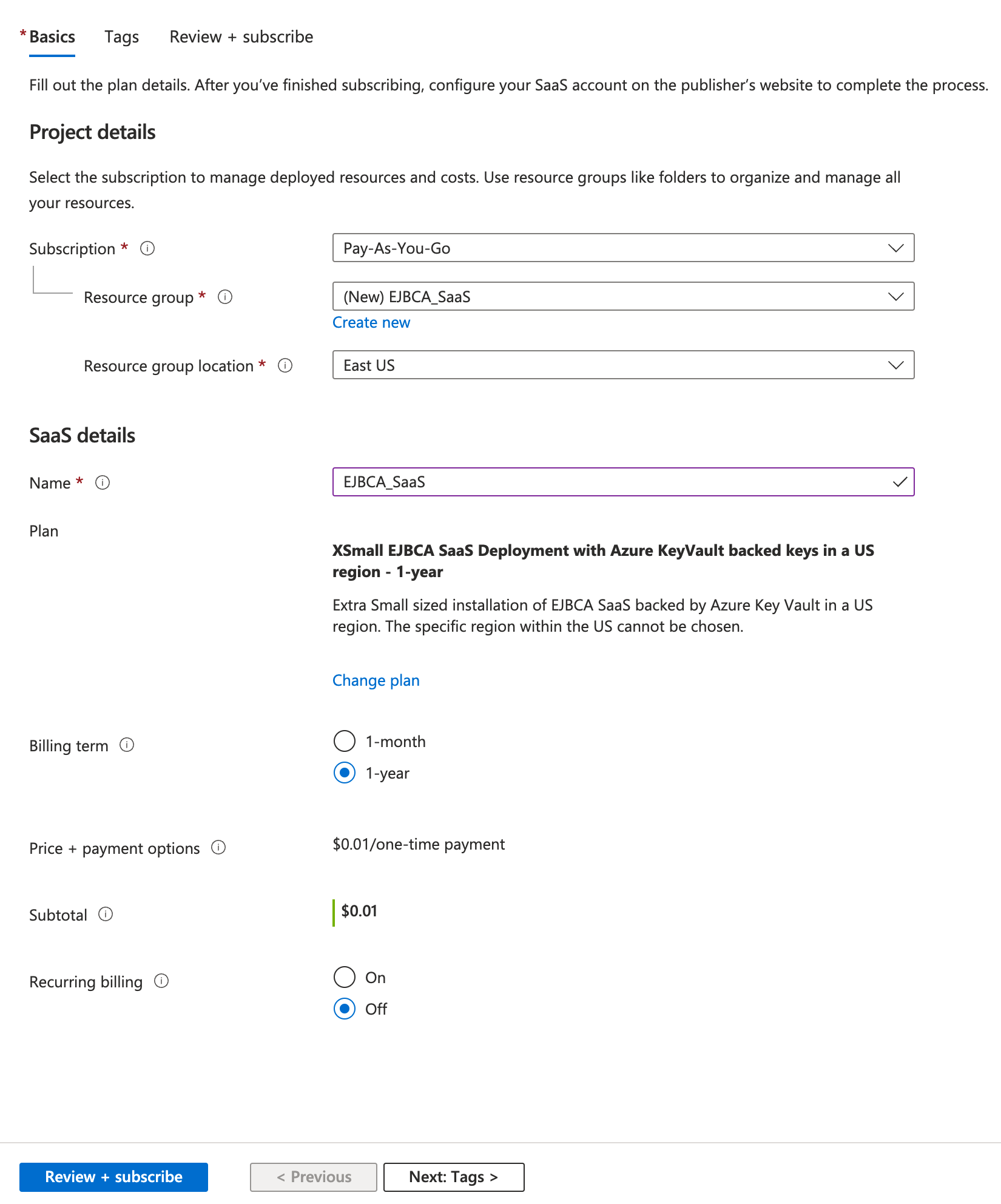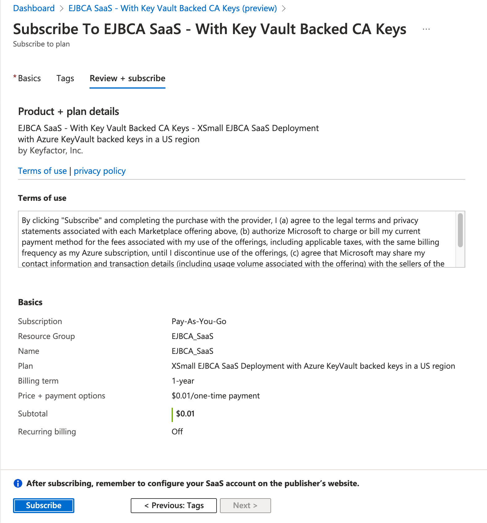 Step 2 - Subscribe to EJBCA SaaS