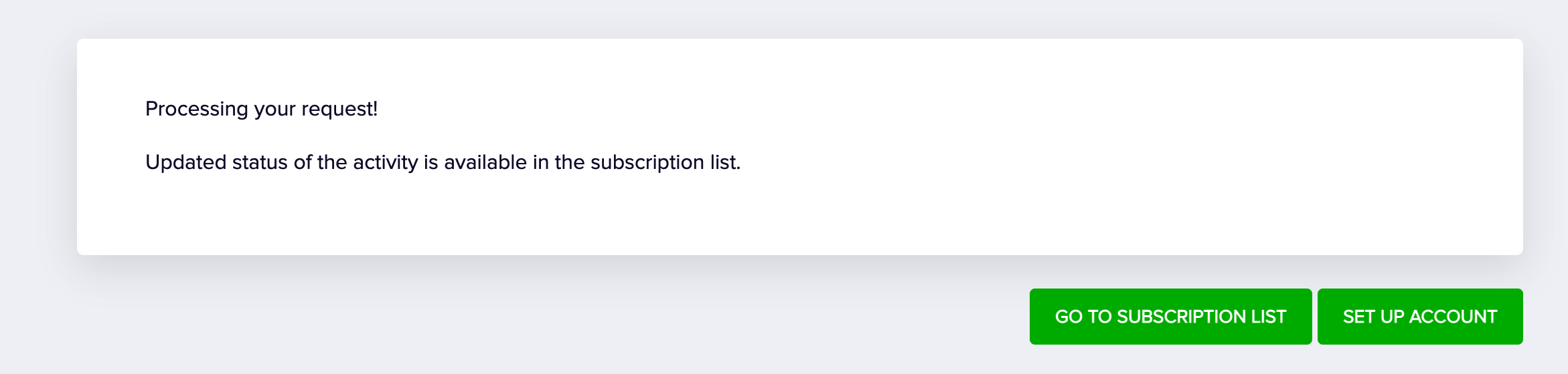- The landing page will process the request to activate the subscription with Azure. Click SET UP ACCOUNT.