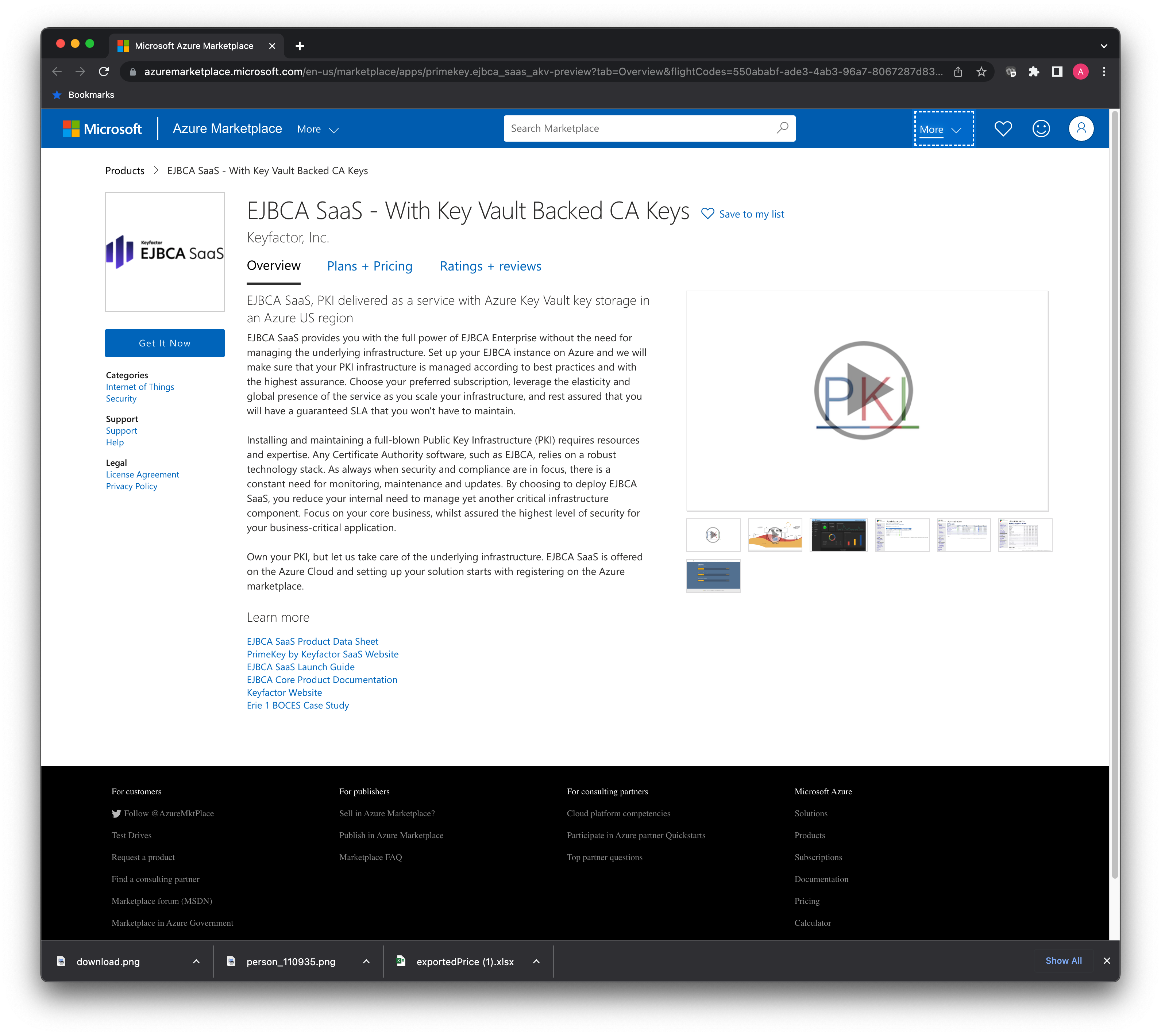 Browse to the Azure Marketplace and search for "EJBCA SaaS" or "Keyfactor" to display the EJBCA SaaS product options.