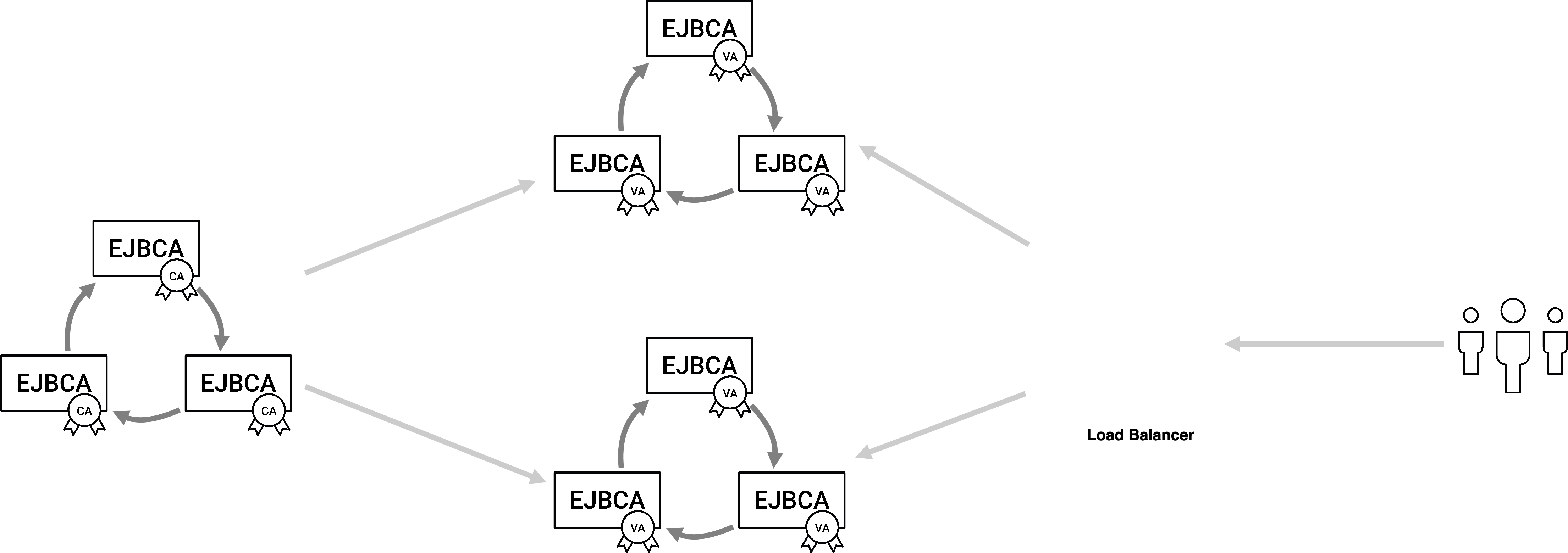 Likewise, clustering can be performed on VAs or RAs to ease the load on your PKI, depending on where your PKI is having performance issues: