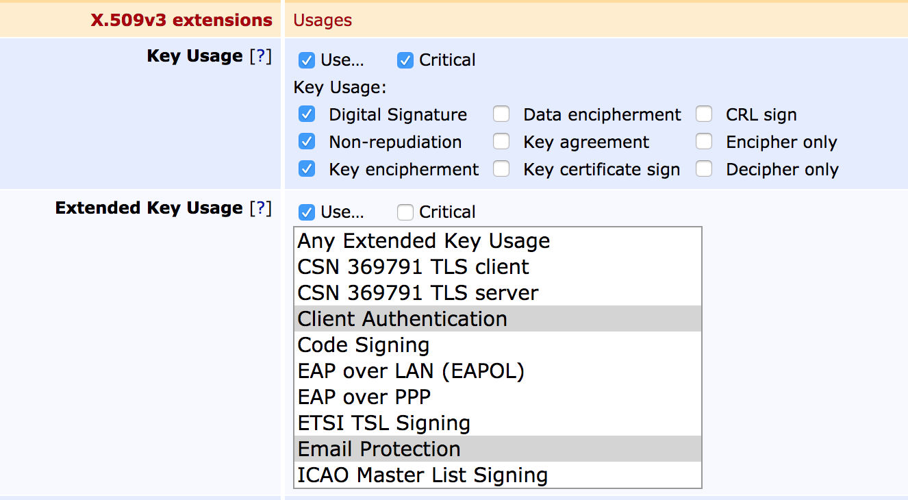 For more information on extended key usages, see Extended Key Usages.