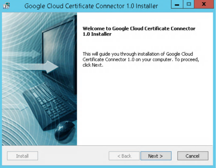 In the Google Cloud Certificate Connector Installer wizard, click Next.