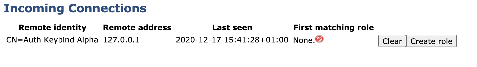 Since EJBCA requires authentication for even internal processes between nodes (in order to strengthen domain security and allow multi tenancy), there needs to be a Role created that matches the certificate defined in the CA's Authentication Key Binding. To create a role: