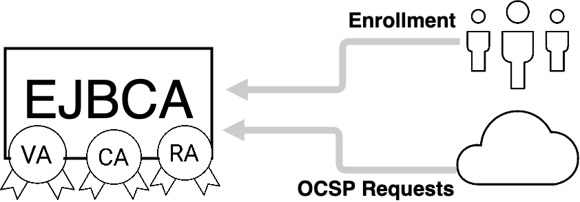 You can deploy a complete PKI in a single instance. Since EJBCA has everything built-in you can have a single instance functioning as both CA and RA. This is a very efficient, easy to manage, and cost-effective solution that is suitable for many SME enterprise deployments.