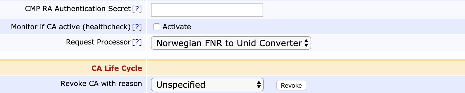 A request processor is set on a CA to manipulate and change fields in an incoming CSR according to a CA's requirements when those cannot be solved using the CA's standard settings.