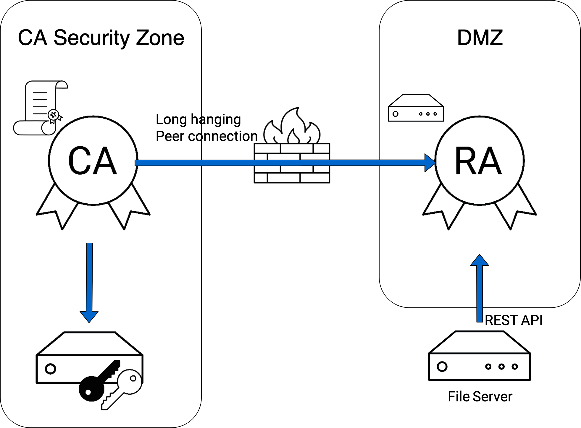 • An RA instance running EJBCA, acting as a proxy between the file server and the CA.