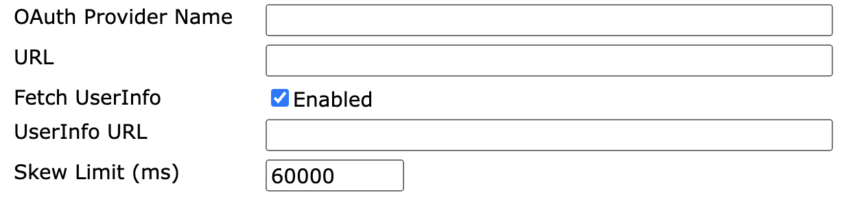 | Skew Limit | The allowed clock difference, in milliseconds, between the OAuth provider and EJBCA. |