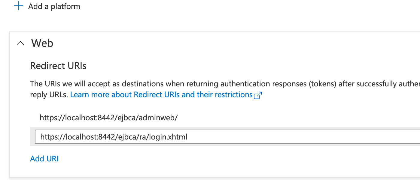 The following describes how to set up Azure Active Directory to test OAuth functionality in EJBCA.