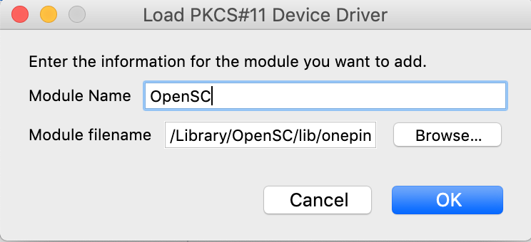 - Click Load to install OpenSC's PKCS#11 Driver.