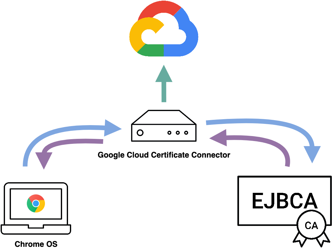 Google Cloud Certificate Connector is a service installed on a third device that acts as an enrollment and administration portal for the enrolling Chrome OS devices.
