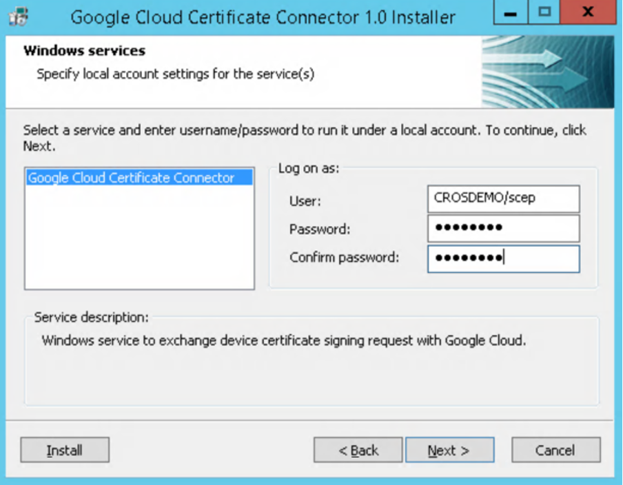 To install the Google Cloud Certificate Connector, perform the following steps: