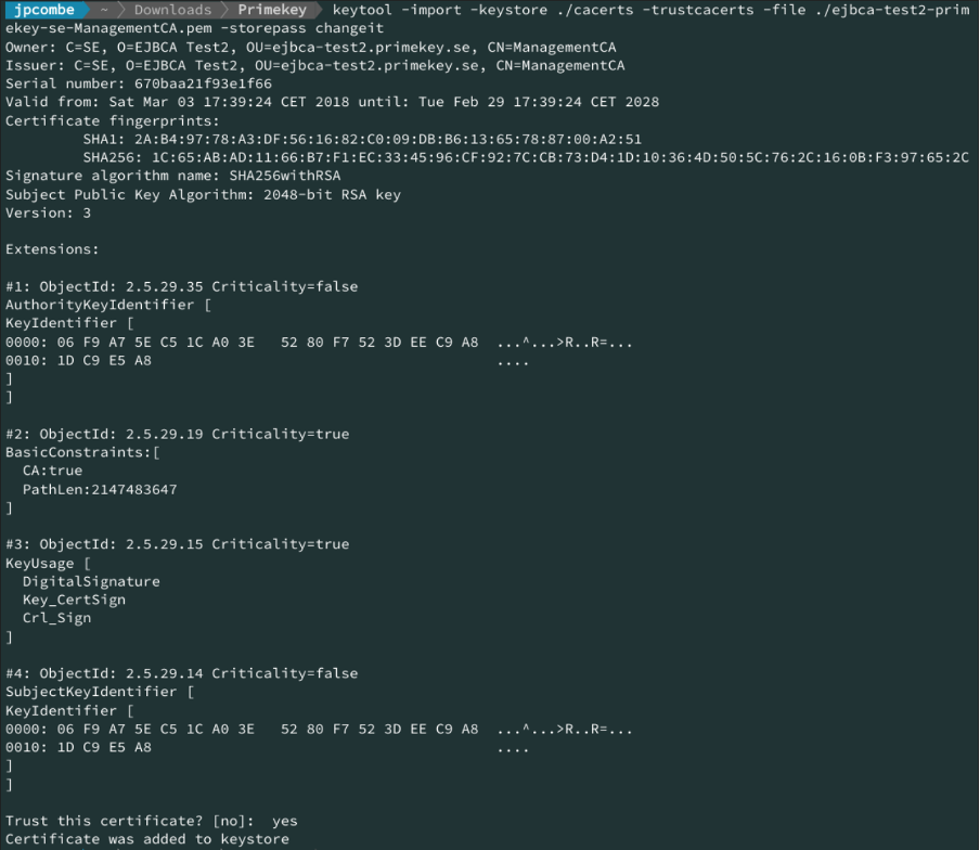 Add the Management CA certificate using the keytool utility:
