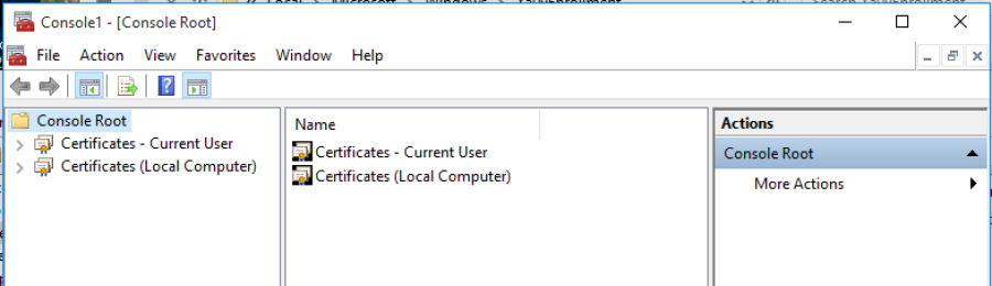 - Click File>Add/Remove Snap-in and select certificates for both user and local computer.