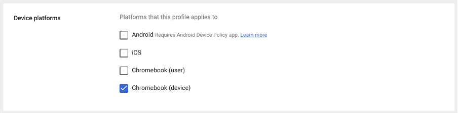 Configure how this template should be applied on Chromebooks, per user or per device: