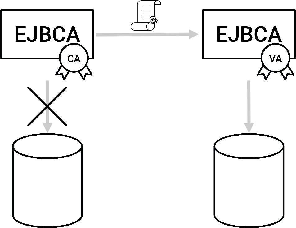 - Minimal storage requirements. Since no issued certificates are stored in the database only EJBCA configuration needs storage.